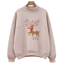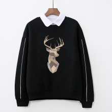 2017春装新款韩版麋鹿刺绣图案高领套头宽松休闲纯棉薄款卫衣女