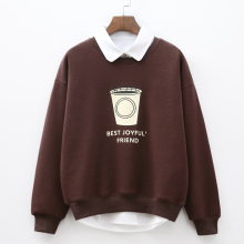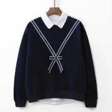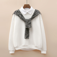 2017春装新款学院风披肩不倒绒假两件纯棉薄款宽松套头圆领卫衣女