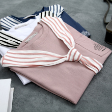 2017夏装新款韩版打底衫条纹上衣半袖宽松百搭学生短袖t恤女 潮