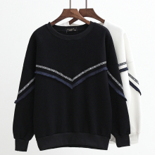 2017春装新款韩版圆领套头织带宽松显瘦长袖学生纯棉薄款卫衣女