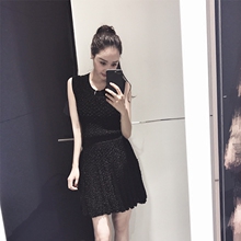 2017夏季露肩露背连衣裙冰丝挂脖小黑裙无袖背心裙收腰蓬蓬裙夏天
