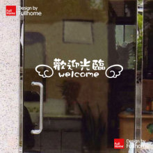 天使翅膀 欢迎光临橱窗玻璃门装饰墙贴纸女装店咖啡店个性店面贴