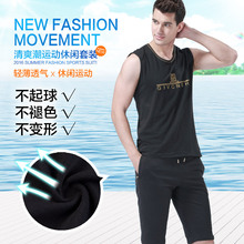 2017夏季纯棉运动服 男 背心篮球服晨练跑步健身大码无袖休闲套装