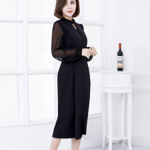2017春装修身显瘦新款女装中长款长袖雪纺连衣裙胖mm大码大牌职业