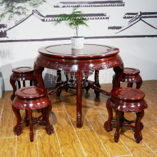 乾府吴韵 五龙圆桌 非洲小叶红檀六件套餐桌餐椅 圆桌圆椅