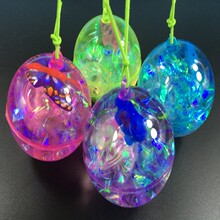彩带弹跳球带绳子七彩弹力水球发光弹球玩具 5.5厘米鱼球