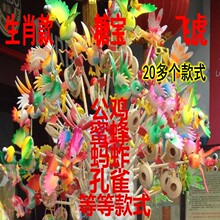 地摊玩具塑料花插弹簧动物木头摇摇鼓龙公鸡孔雀蜜蜂马蜻蜓蝴蝶