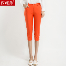 西施鳥2017春夏新款女装七分裤女糖果色高腰7分铅笔裤休闲小脚裤