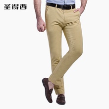 圣得西2017春夏青年男士商务修身休闲裤纯色直筒多色时尚中腰长裤