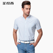 圣得西男装2017夏季商务休闲男士短袖衬衫青年韩版修身纯色衬衣男