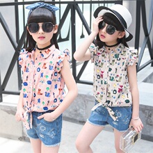 女童纯棉小飞袖衬衫童装2017夏季新款卡通印花上衣儿童休闲时尚潮