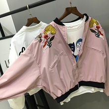 韩国2017春装新款刺绣绣花宽松蝙蝠袖超短款外套棒球服夹克女潮