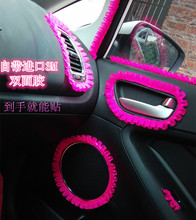 韩国可爱卡通蕾丝玫红粉红色汽车 后视镜套套饰套装档把套手刹套