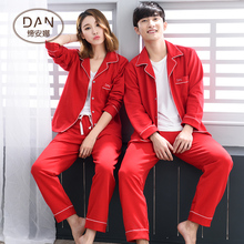 2套价 春夏季情侣睡衣长袖纯棉大红结婚男女本命年幸运家居服套装