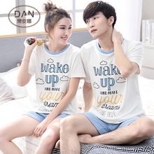 缔安娜2017夏季情侣睡衣短袖纯棉男女士简约全棉家居服套装可外穿