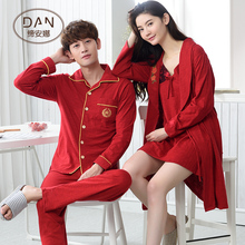 春秋冬季情侣竹节纯棉大红结婚长袖本命年幸运睡衣女睡袍男家居服