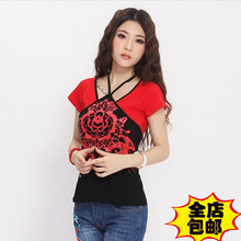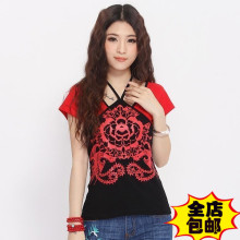 天天特价中国风 民族风女装夏装上衣刺绣修身绣花短袖t恤女棉大码