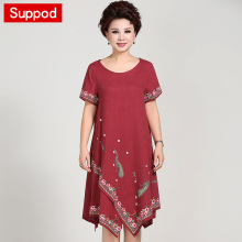 妈妈装夏装中年女40-50岁裙子宽松大码中长款中老年女装夏连衣裙
