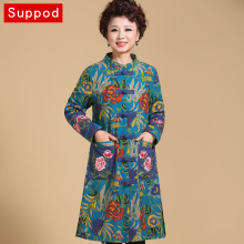 中老年女装棉衣加厚中长款绣花外套婚礼妈妈装冬装唐装中年女棉服