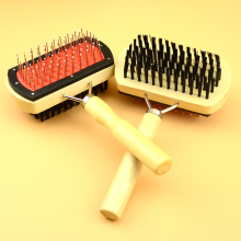 高档木柄宠物梳子 狗梳子双面按摩梳狗狗针梳猫狗脱毛梳刷子 用品