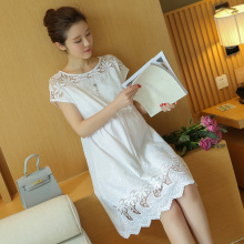 孕妇夏装连衣裙时尚款2017新款潮妈宽松镂空中长款纯棉韩版裙子女