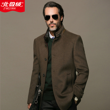 北极绒秋冬季中年男士中长款立领修身羊毛呢子大衣妮子外套毛领潮