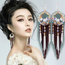 韩版流苏耳环女手工手作耳坠长款夸张饰品复古民族风大耳饰耳挂式