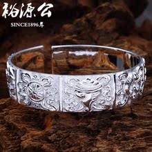 裕源公 999足银 手工藏传佛教八宝纯银手镯女 纯银心经手镯