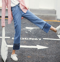 春季新款宽松高腰显瘦九分牛仔阔腿裤女直筒裤