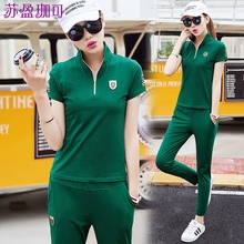 运动套装2017夏季新款短袖时尚卫衣立领修身套头休闲服两件套装女
