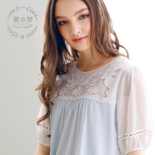 美梦2016春夏季短袖长裤女士睡衣莫代尔棉宽松蕾丝公主家居服套装