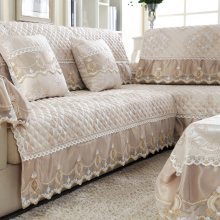 防滑布艺沙发垫仿亚麻坐垫子蕾丝欧式四季定做实木沙发套罩巾