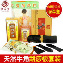 孝心堂刮痧板牛角面部背部全身刮痧板套装天然牛角正品送刮痧油