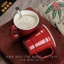 红色陶瓷马克杯 节日喜庆结婚礼物 简约设计喝水杯子