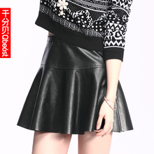 千分贝 韩版新款女士蓬蓬A字小皮裙 PU半身裙短裙伞裙皮裙秋冬