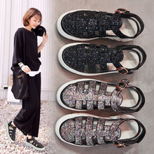 凉鞋女夏季2017新款厚底松糕韩版学生罗马鞋子百搭一字带露趾女鞋
