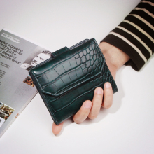 2017原创设计新款鳄鱼纹短款小钱包女士搭扣钱夹时尚零钱位钱包潮