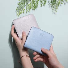 小蜜蜂 2017新款真皮短款钱包女士两折钱夹 柔软头层牛皮 小钱包
