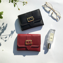 韩国东大门新款女士小钱包真皮短款钱包搭扣三折大牌头层牛皮钱夹