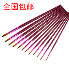 包邮12支紫杆圆头尼龙毛画笔/水粉笔/水彩笔/丙烯画笔/水彩画笔