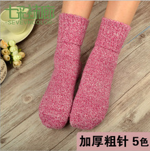 森系秋冬加厚加绒保暖羊毛绒女短袜子粗针编织耐磨抗起球纯色袜子