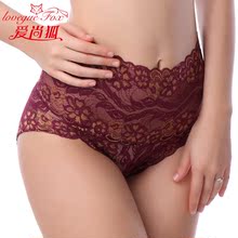 爱尚狐性感全蕾丝透气女士三角内裤舒适高腰运动瑜珈大码女式短裤