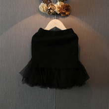 裙摆多层纱装饰弹力童装女童针织包臀短裙2017儿童春装半身裙新款