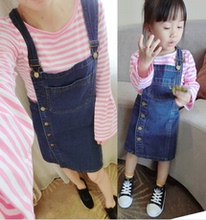 2016秋装 女宝中小童牛仔背带裙亲子装 母女牛仔裙四季可穿