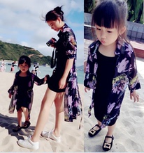 定制春夏度假女童亲子装沙滩雪纺长裙 宽松大码母女装亲子裙