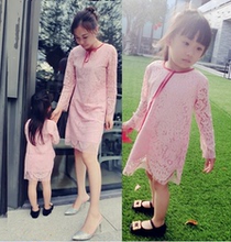 时尚亲子装春装蕾丝连衣裙 2017新款潮母女装