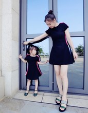 亲子装夏季 中小女童洋装连衣裙 修身短袖连衣裙母女装新品