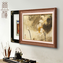 客厅装饰画 现代新中式玄关挂画 书房卧室壁画 水墨禅意荷花实木