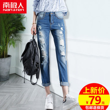 南极人破洞牛仔裤女九分裤宽松乞丐韩国bf韩版学生潮人小脚哈伦裤