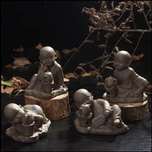 彩砂陶琴棋书画小和尚 精品紫砂茶宠摆件 茶具配件家居装饰品清仓